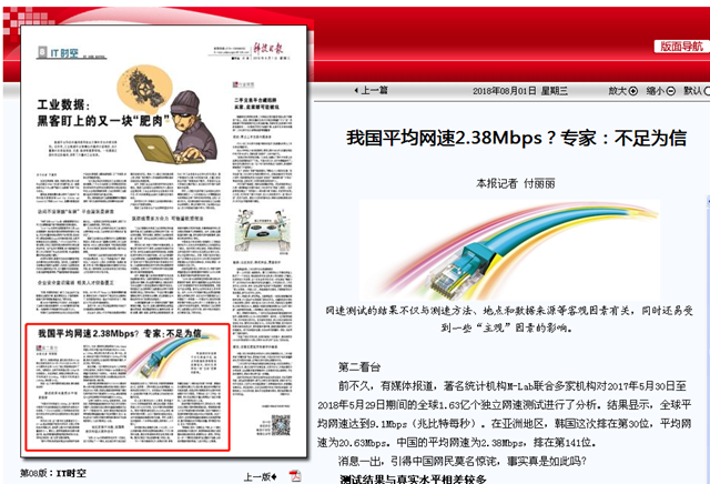 【科技日报】我国平均网速2.38Mbps?专家:不足为信