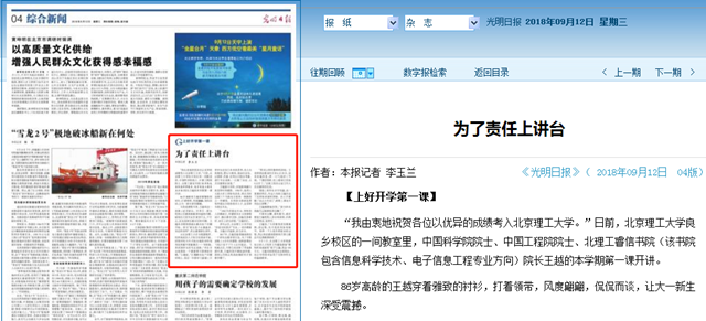 【光明日报】北理工王越院士:为了责任上讲台