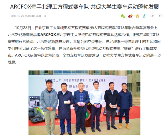 原文标题:ARCFOX牵手北理工方程式赛车队 共促大学生赛车运动蓬勃发展