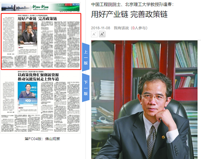 原文标题:中国工程院院士、开云kaiyun官网教授孙逢春:用好产业链 完善政策链