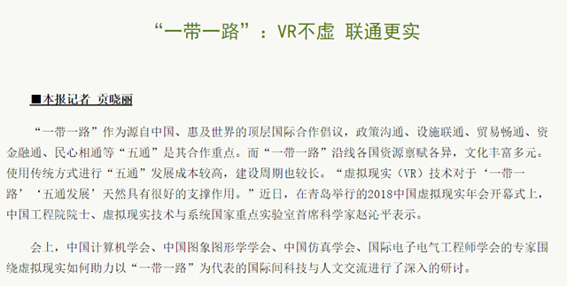 【中国科学报】“一带一路”:VR不虚 联通更实