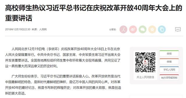 【人民网】高校师生热议习近平总书记在庆祝改革开放40周年大会上的重要讲话
