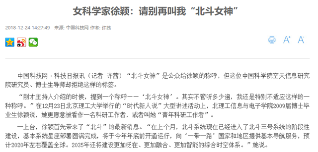 【中国科技网】女科学家徐颖:请别再叫我“北斗女神”