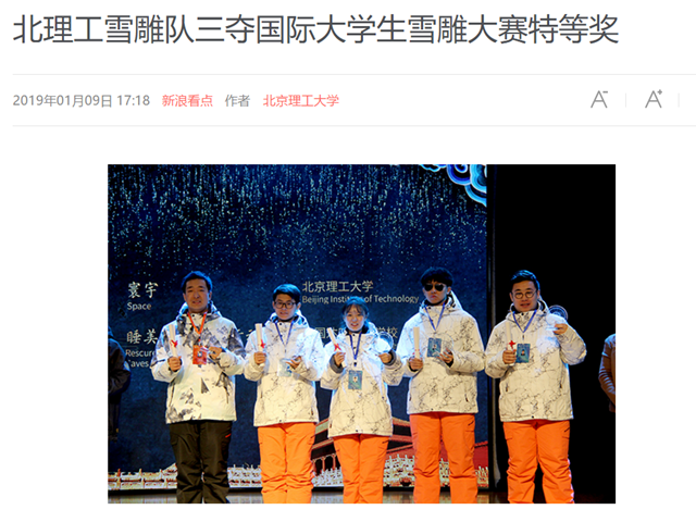 【新浪网】北理工雪雕队三夺国际大学生雪雕大赛特等奖