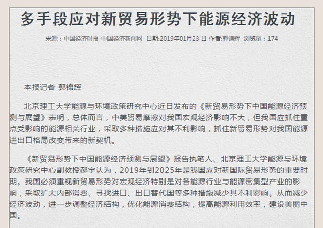 【中国经济时报】多手段应对新贸易形势下能源经济波动