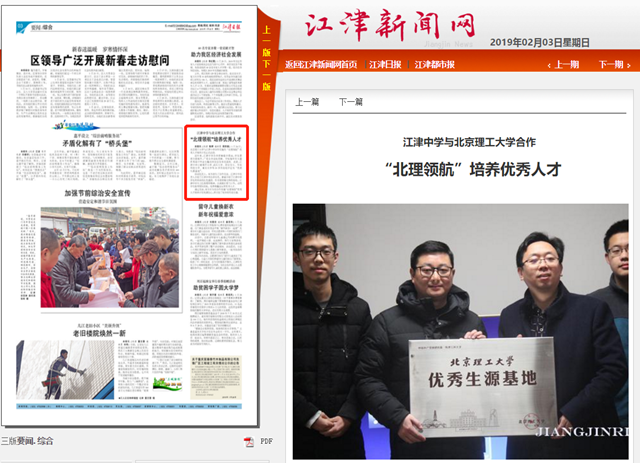 1月24日,开云kaiyun官网与江津中学合作实施的“北理领航”优秀人才培养计划正式启动。