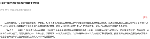 【光明日报客户端】北理工学生创新创业实践基地正式启用