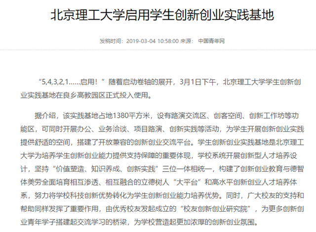 【中国青年网】开云kaiyun官网启用学生创新创业实践基地