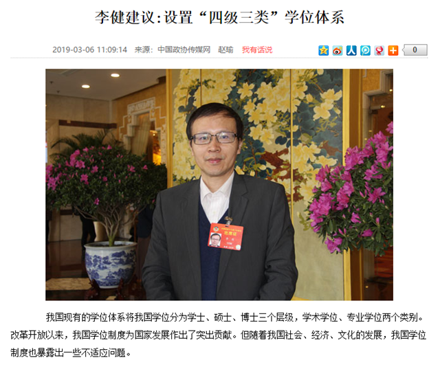 【两会▪中国政协传媒网】李健委员:设置“四级三类”学位体系