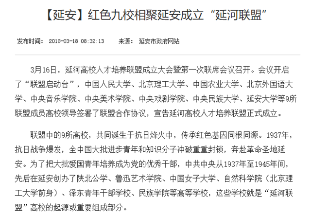 原文标题:红色九校相聚延安成立“延河联盟