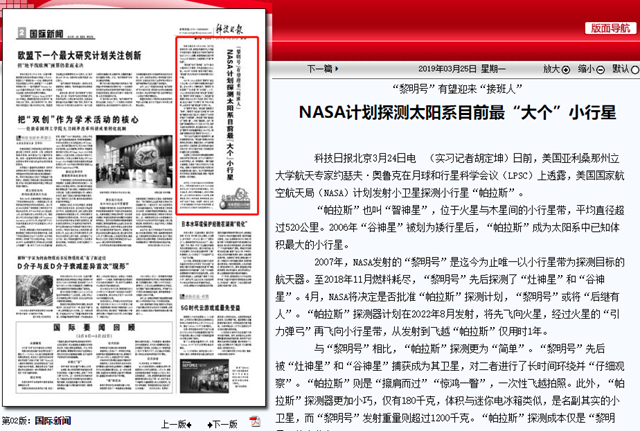 【科技日报】NASA计划探测太阳系目前最“大个”小行星