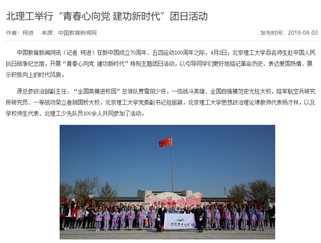 【中国教育新闻网】北理工举行“青春心向党 建功新时代”团日活动