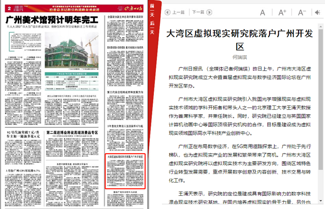【广州日报】大湾区虚拟现实研究院落户广州开发区