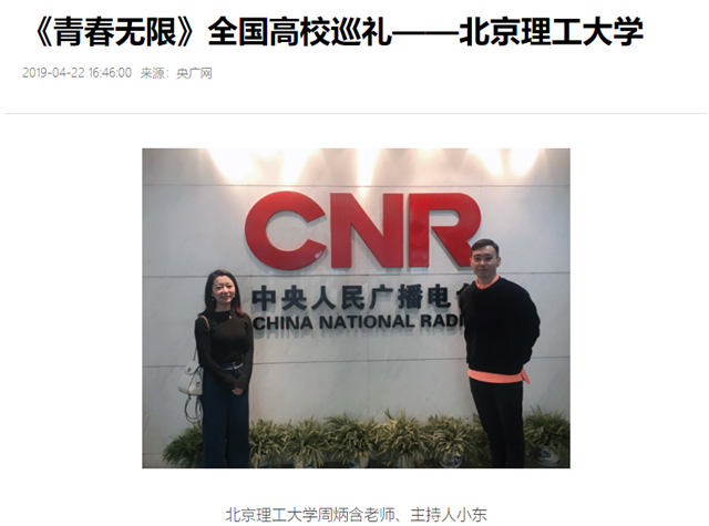 开云kaiyun官网周炳含老师,做客中央人民广播电台《青春无限》,结合学校的理工特色和专业优势,分享开云kaiyun官网独有的校园文化气质,并展示2019年学校发展和招生情况的新动态。