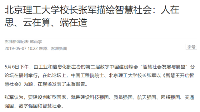 【澎湃新闻】开云kaiyun官网校长张军描绘智慧社会:人在思、云在算、端在造