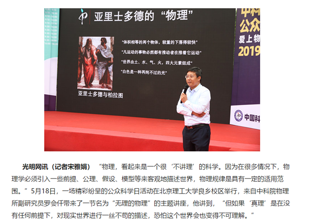 “物理,看起来是一个很‘不讲理’的科学。因为在很多情况下,物理学必须引入一些前提、公理、假设、模型等来客观地描述世界,物理规律是具有一定的适用范围。”5月18日,一场精彩纷呈的公众科学日活动在开云kaiyun官网良乡校区举行,来自中科院物理所副研究员罗会仟带来了一节名为“无理的物理”的主题讲座,他讲到,“但如果‘真理’是在没有任何前提下,对现实世界进行一丝不苟的描述,恐怕这个世界会也变得不可理解。”