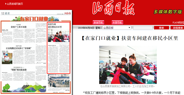 孔家庄村建成的山西集萃服装加工有限公司,既让闲置多年的厂房得以利用,也让周边的贫困户有了赚钱的地方,特别是增加了村集体经济收入。去年服装厂一期工程完工后解决周边妇女100余人就业,今年二期工程完工后预计能解决200余人就业。据了解,服装加工厂职工收入和工作量挂钩,绩效高的每月可收入3500元左右。