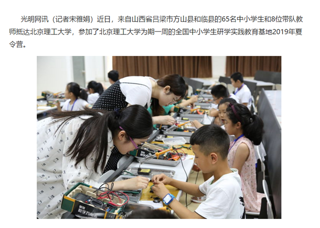 原文标题:北理工举办全国中小学生研学实践教育基地夏令营