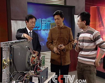 观 众:先谢谢咱们的美女主持人张泉灵把话筒给我。咱们的节目是创新中国,中国创新,今天来了几位老总,还有领导,还有机器人、MP3,包括海信的芯片,他们都是家长,但是我很高兴,我也是家长,因为它不但是海信或者华旗的孩子,也是中国人民的孩子。孩子是自己的好,但是我们中国人有一个优点,不护犊子。女孩子经常挂在口头上,闷在心里头,而且行动上也这么做了,不愿意找一个二等残废,如果我们的心肺有毛病,那二等残废都赶不上,女孩子还是愿意找一个帅哥,我希望我们的孩子都是美女和帅哥。