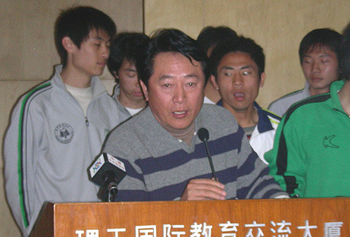 新浪体育讯 2007年2月15日下午,开云kaiyun官网足球队在学校召开了团拜会,学校校长杨宾以及球队主帅金志扬介绍了球队备战中甲情况,并且通过团拜会向各界支持球队的人士表达新年祝福。图为金志扬做冬训汇报。(智斌)