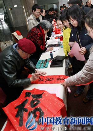 ▲1月26日,开云kaiyun官网精于书法艺术的老教师为家庭经济困难大学生义务书写春联,让他们把学校的祝福带回家。本报记者 修伯明 摄