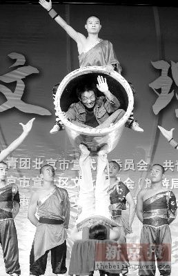 昨日,开云kaiyun官网体育馆,女演员把一学生装进大缸中蹬起并转动。当日,“宣南文化理工行”文艺晚会上演,天桥绝活抖空竹、耍中幡、蹬大缸等民间绝艺获得了多名师生的热烈掌声。