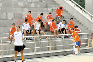 作为一名研究生,袁微的课程比其他队友要少一些,并且他已经基本确定毕业后留校,这也让他比其他队友轻松很多。这个研究生每天的生活都是一样的“单调”:早上在课室或者图书馆写毕业论文,下午到球场训练——这也是他们球队几乎所有球员的生活轨迹。“最好的休息?睡觉,或者看看电影,还有就是在小卖部吃吃烧烤,喝瓶啤酒。”学生球员们认为自己和“话剧社”、“文学社”的同学没有差别,足球队也仅是学校的一个社团。中国职业足球员的高薪离他们还很远,像袁微、杨思源、康斯贝这些主力球员,享受到的待遇仅是学校提供的800元~900元的奖学金,待遇最好的是金俊值和韩济光等韩国留学生,他们的待遇是减免学费。