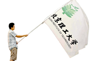 与广药队的比赛中,“学生军”的大旗随风飘扬