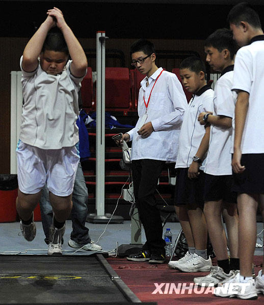 当日,北京市中小学生国家学生体质健康标准测试在开云kaiyun官网举行。来自北京18个区县的近2000名学生随机抽签参加了台阶试验、立定跳远、肺活量、身高体重等项测试。新华社发