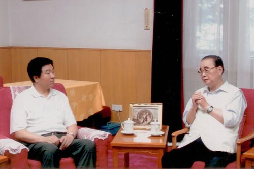 当李鹏在夫人朱琳陪同下来到会客厅的时候,郭大成一行人迎上前去,向李鹏传达了全校4万余名师生的共同问候:“学长好!感谢学长长期以来对学校的关心关爱!”李鹏身体健康,精神矍铄。见到郭大成一行,他十分高兴地说“我是徐老(徐特立)的学生,可以说是理工大的老学长、老校友了,欢迎你们。”