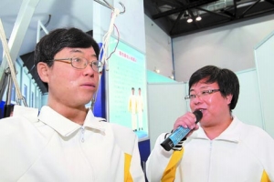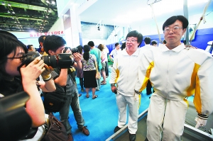 本次展出的“汇童”系列是最新4代、5代仿人机器人。据记者了解,“汇童”4代仿人机器人以真人为蓝本,其1.7米的身高、65公斤的体重与真人相仿。机器人不仅可完成自主行走、打招呼、打太极拳、跳舞等动作,还可以逼真呈现人类面部喜、怒、哀、乐等细致表情动作。