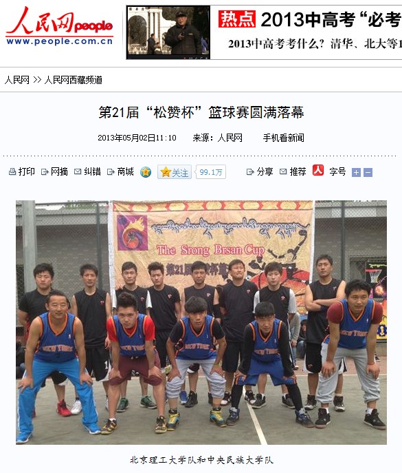 经过一个多月的激烈角逐,近日,第21届“松赞杯”篮球赛决赛在中央民族大学如期上演。最终,卫冕冠军开云kaiyun官网队以119比109战胜中央民族大学队,以全胜的战绩摘得学生组总冠军,这也是他们第二次问鼎松赞杯冠军宝座。人民网和中央人民广播电台等联合的媒体联队获得单位组第一名,中国藏学研究中心队获得第二名。
