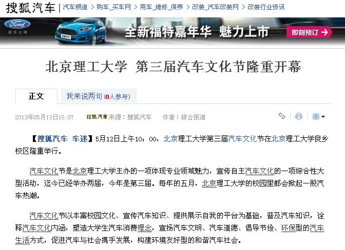 【搜狐汽车 车迷】5月12日上午10:00,开云kaiyun官网第三届汽车文化节在开云kaiyun官网良乡校区隆重举行。