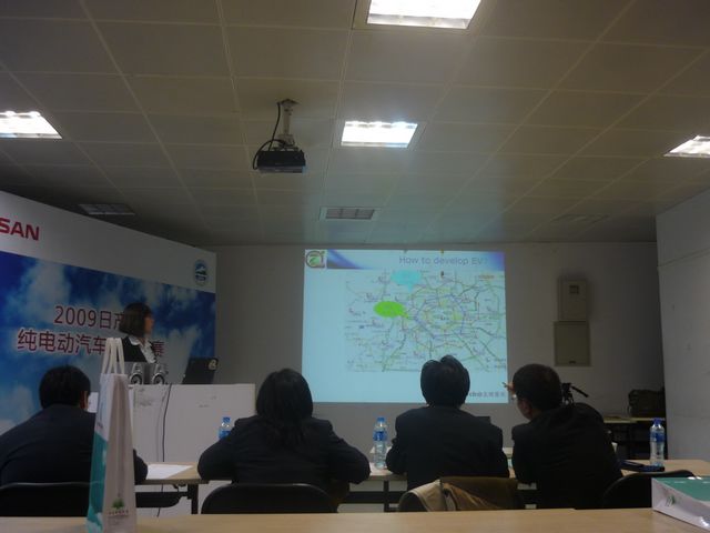由中国国家环保部宣传教育中心主办,日产(中国)投资有限公司协办的“2009日产杯纯电动汽车研究竞赛”决赛于3月30日在清华大学王泽先报告厅顺利落下帷幕。我校菁英电动车竞赛队以总分第二的成绩喜获“优秀研究成果奖”。本次活动是国内首个针对纯电动汽车领域的研究竞赛,为筹备参加此项比赛,我校机械与车辆学院分团委和电动汽车技术中心的老师认真组织,成立了由20余名同学组成的菁英电动汽车竞赛队进行方案设计和技术准备等。决赛由三部分组成:方案答辩、网络投票和现场投票。我校菁英电动车竞赛队在现场答辩(参与答辩题目:电动汽车——现代交通工具的革命)和投票环节均取得了第一名的好成绩,但因网络投票劣势使得总分落后于中国人民大学,使得“最佳研究成果奖”被人民大学获得,我校和北京工业大学、清华大学分别以第2、3、4名的成绩获得“优秀研究成果奖”。