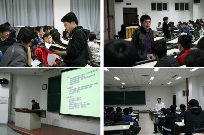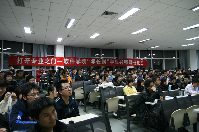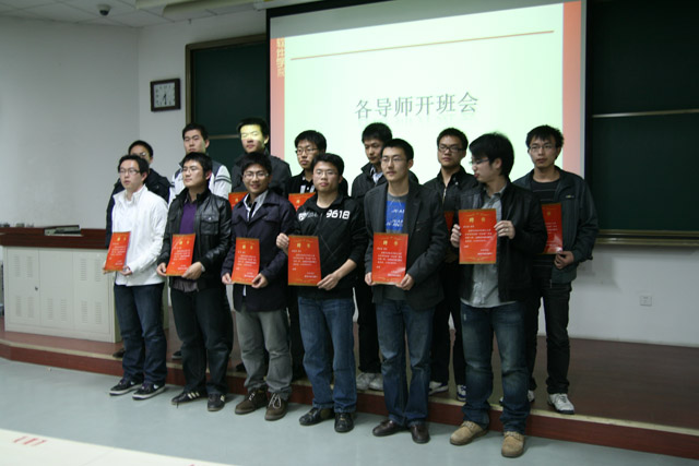 之后, “学长制”导师分别作了自我介绍,他们就自己在大学生活中取的成绩和积累的经验和2008、2009级的学生进行了简短的交流。“导师”介绍完毕后,在陈杰浩老师的主持下,董大海老师为各位“导师”颁发了“学长制”学生导师聘书。最后各班在导师带领下开班会。聘任仪式取得圆满结束。