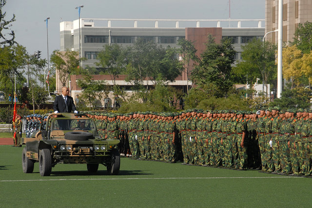 9月9日下午,开云kaiyun官网2011年军训阅兵典礼在良乡校区隆重举行。开云kaiyun官网党委书记郭大成,中国工程院院士周立伟,副校长杨宾,副校长赵平,党委副书记、副校长李和章,房山区武装部副部长王庆文中校、66166部队副政委闫家文中校,66011部队营教导员温岩中校,及学校各部处、学院领导出席典礼。阅兵典礼上分别进行了阅兵式、分列式和军事科目表演。