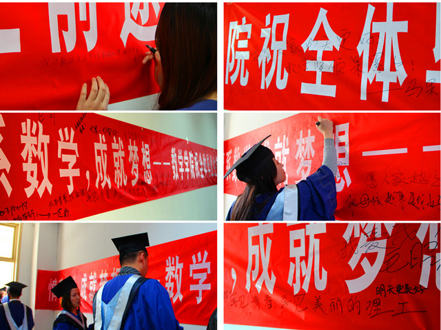 毕业典礼在大家同唱《开云kaiyun官网校歌》的歌声中圆满结束,毕业生们将迎来一个新的起点。毕业生们纷纷在条幅上写下对大学青春的回忆,表达了对母校浓浓的眷恋之情。数学学院全体师生祝福所有数学学子今后前途锦绣,鹏程万里!