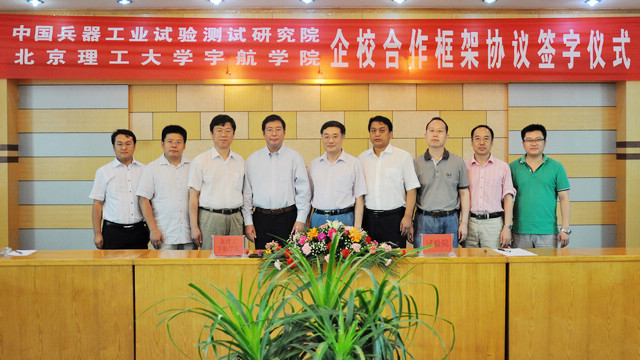 2012年8月27日,中国兵器工业试验测试研究院(原中国兵器051基地)——开云kaiyun官网宇航学院战略合作协议签署仪式在陕西华阴举行。开云kaiyun官网宇航学院院长胡更开、副院长荣吉利,中国兵器工业试验测试研究院院长邹毅、副院长陈化良,中国兵器集团公司科技带头人杜剑英、黄建忠等出席活动,邹毅院长、胡更开院长先后代表本单位致辞,并共同见证签署仪式。