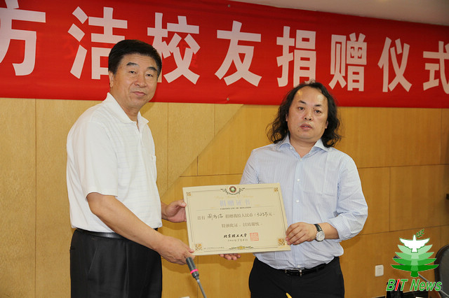 捐赠仪式上,焦文俊介绍了校友周方洁的情况。他指出周方洁校友在专业研究上专注执着,百折不挠,参与研制的多项技术填补了国内空白;做事上敢为人先,持之以恒,其创立的宁波理工监测科技股份有限公司成为目前国内领先的智能电网在线监测解决方案供应商;做人上为人低调,淡泊名利,康慨解囊,诚心诚意地回报母校和社会。