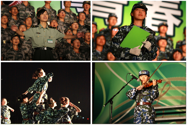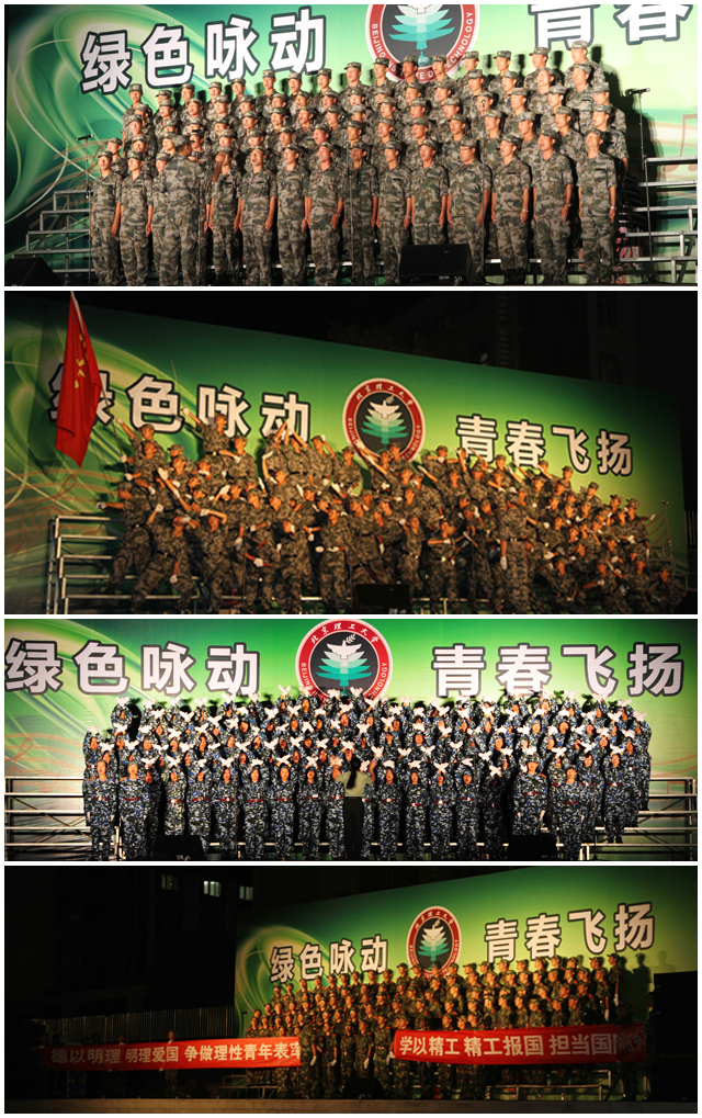 各营的合唱都融合了独具特色的表演,热血男儿的诗朗诵,绿装红颜的舞蹈,精心排练的动作都展现了北理工学子的青春风貌。