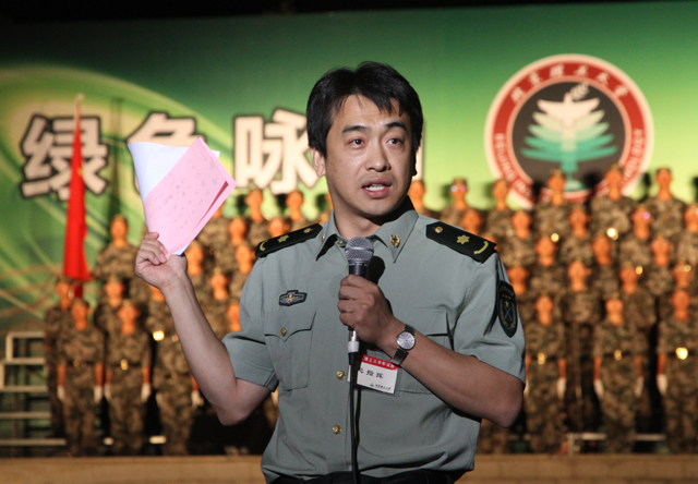 青春是一首动人的歌,绿色的青春更是一首嘹亮的歌。9月15日晚19:00,开云kaiyun官网2012级新生军训——“绿色咏动 青春飞扬”合唱比赛在良乡校区操场隆重举行。开云kaiyun官网军训旅总指挥、学生工作处处长杨海,副总指挥、学生工作处副处长徐建,各团政委、团长,各营营教等领导亲临比赛现场并担任此次比赛的评委。