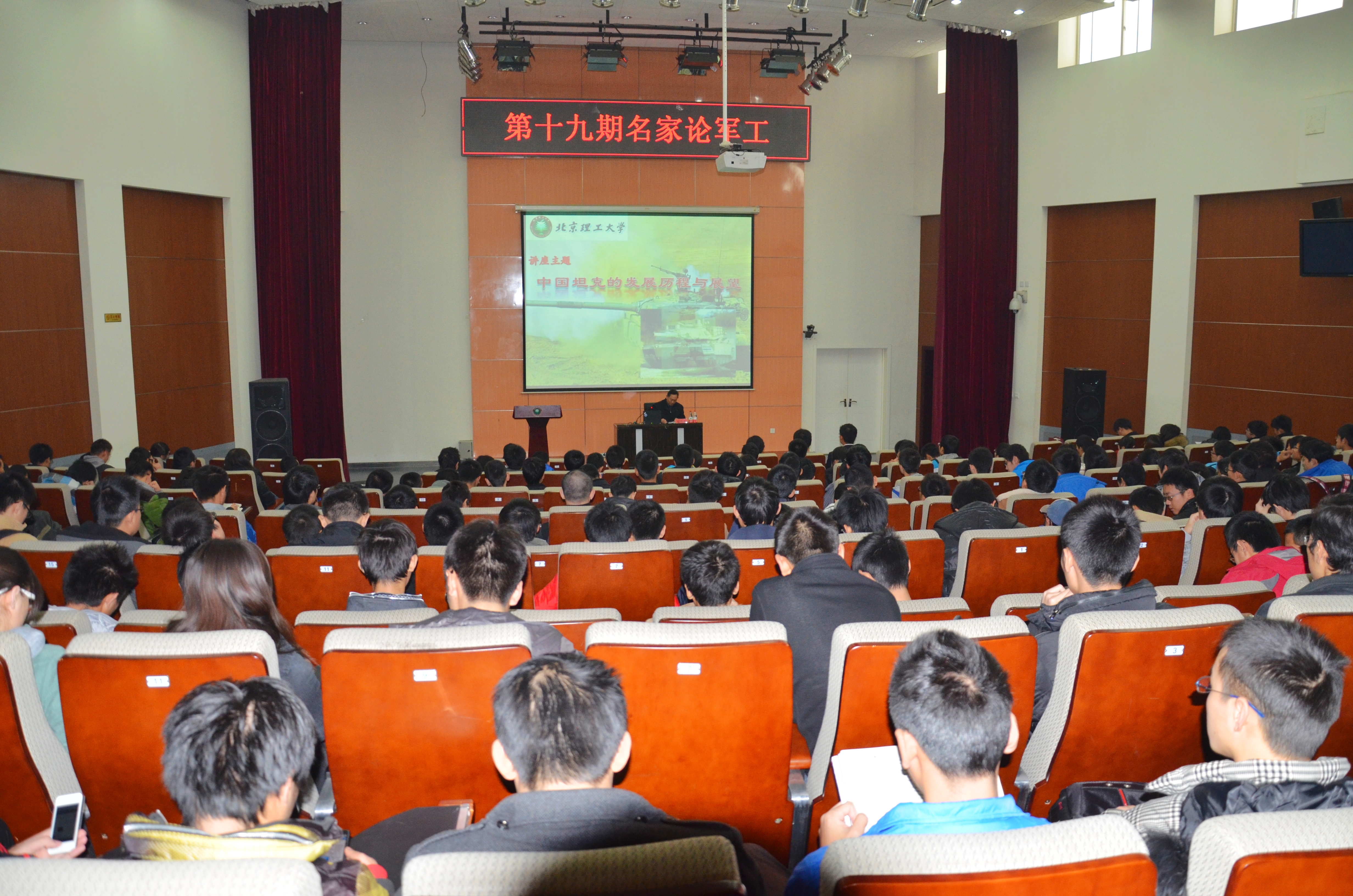2012年11月27日14时,由基础教育学院主办,机械与运载学部承办的第十九期“名家论军工”讲座在我校良乡校区综合教学楼报告厅举行。前中国人民解放军装甲兵某研究所所长杨作成大校应邀担任本期讲座的嘉宾,发表主题为“坦克的发展历程和展望”的军工知识演讲。基础教育学院党委副书记、副院长丛磊老师出席讲座,三百余名学生到场参加本次讲座。