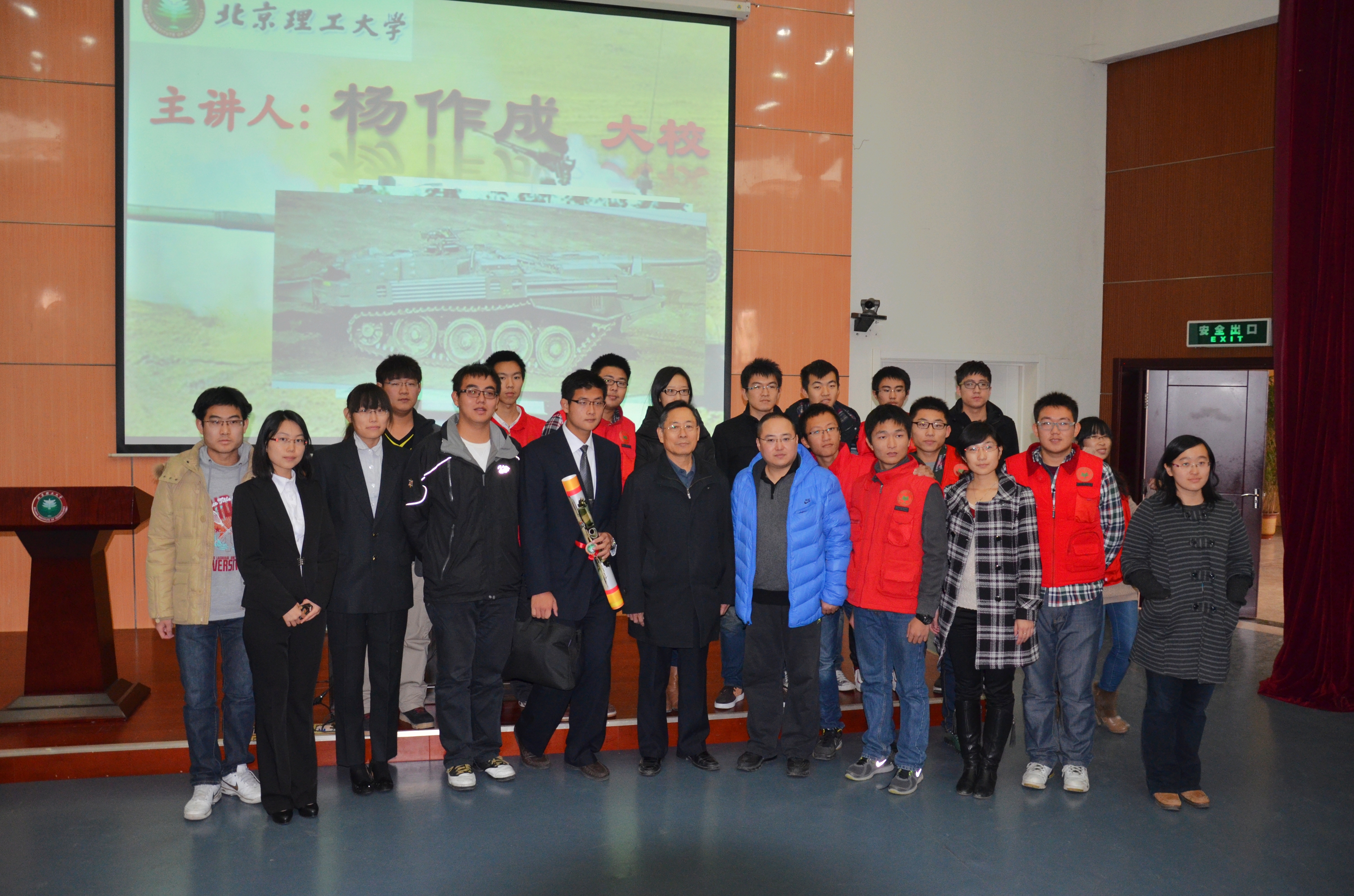 在长达两小时的演讲中,杨教授分其为三个部分,世界坦克发展史、中国坦克发展史以及坦克未来的发展及展望。尤其在第二部分的时候杨教授对中国坦克从艰难起步到跻身世界前列的光荣发展历程进行了全面讲解,民族自豪之感溢于言表,最后杨教授展望中国坦克发展前景,并鼓励同学们对我国军工事业发展持乐观态度。他指出,中国未来的希望就寄托在当代青年人的身上。