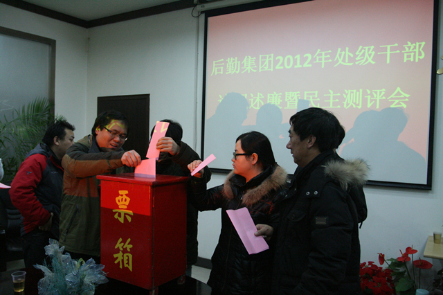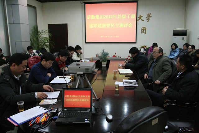 2012年12月25日下午,后勤集团于餐饮服务中心会议室召开2012年度处级干部述职述廉暨民主测评会。后勤集团处级干部、各部、中心职工代表共计43人参会,会议由后勤集团党委书记巫后新主持。