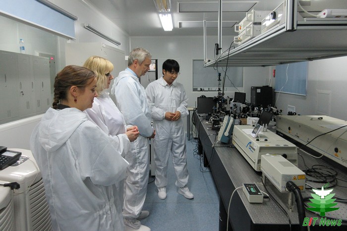 9月29日上午,柏林工业大学校长Christian Thomsen和国际合作处Evelina Skurski参观了光电学院和机械与车辆学院中关村校区实验室。在光电学院“光电信息与颜色工程研究所”、 “北京市混合现实与新型显示工程中心”,Thomsen校长认真听取了我校同学对实验室目前研究成果的介绍,并和同学们一起饶有兴致地体验了部分实验过程。