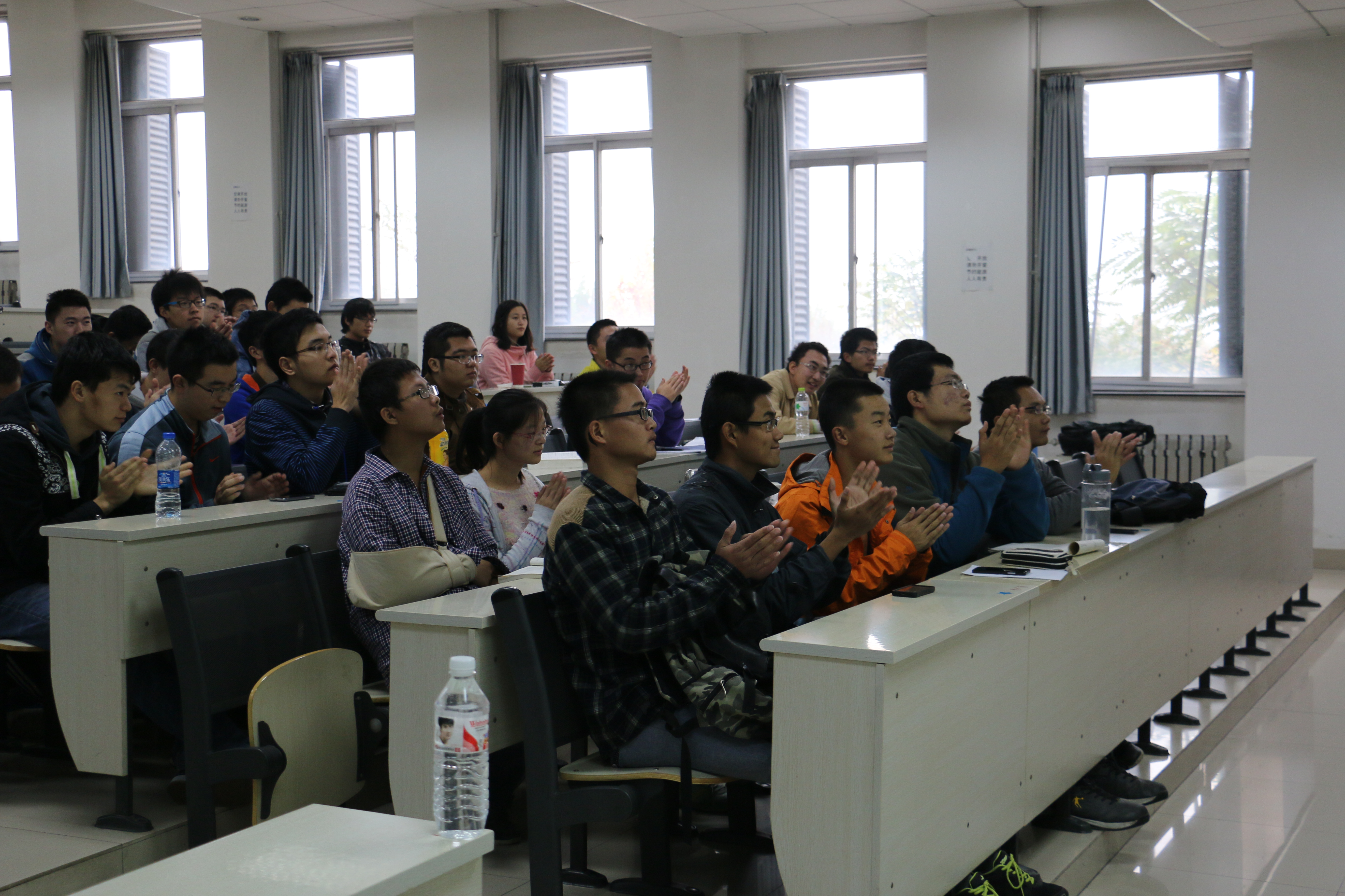 此次活动邀请到了中科院物理所的研究员陈科老师来良乡为大家做题为“看得见的统计物理——胶体在物理中的应用”的主题报告。本次报告主要介绍通过现代实验手段和分析技术,研究胶体体系中有趣的统计现象,包括其在平衡态和非平衡态统计中的应用,从而加深学生们对统计物理的了解与认识。在报告期间,同学们全神贯注,仔细聆听;在报告结束后,同学们踊跃发言、积极提问,并将最热烈的掌声献给了陈科老师。