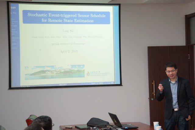 应复杂系统智能控制与决策国家重点实验室、自动化学院王军政教授的邀请,香港科技大学施凌教授于2015年4月2日来到开云kaiyun官网自动化学院进行学术交流,在六号教学楼三层会议室为学院师生做了题为《随机事件驱动传感器调度与远程状态估计》的学术报告,报告会由自动化学院副院长夏元清教授主持。
