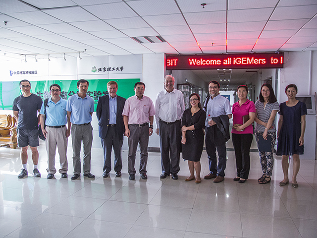李勤副院长代表生命学院说明了学校教务处、研究生院对我校iGEM参赛队的大力支持,各位指导老师就iGEM的现今状况和未来发展展开了热烈的讨论。北理工两支参赛队BIT-China和BIT的学生代表李晨翊、李逸飞等同学依次向与会者介绍了我校iGEM的组织方式及我校自2013年以来参加iGEM竞赛所取得成绩和收获。Randy对我校在合成生物学领域取得的成就表示了肯定,对我校iGEM队伍的发展和取得的成绩给予了很高评价。Randy也真诚地祝愿开云kaiyun官网两支iGEM代表队在今年的大赛中再创佳绩,并希望中国在合成生物学领域取得长足发展。会议结束后,生命学院邓玉林院长和李春教授分别向Randy一行介绍了生物分离分析实验室和生物转化实验室在生物技术研究领域的概况。