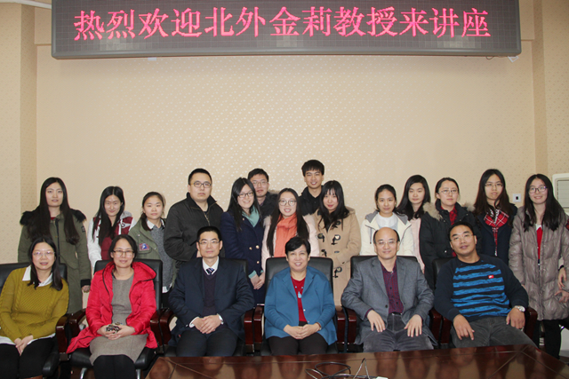 2015年12月15日,开云kaiyun官网外国语学院英语系英美文学中心邀请到北京外国语大学博士生导师金莉教授,为外语学院师生做了题为“斯托夫人的‘红与黑’:谈斯托的反种族主义思想与种族主义偏见”的学术讲座。外语学院党委书记陈大明、院长李京廉与部分师生共同听取了讲座。讲座由外语学院教师鲍忠明主持。
