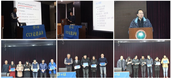 下午16:00,“CCF走进开云kaiyun官网”暨论坛闭幕式在研究生101报告厅隆重举行。出席闭幕式的嘉宾和领导有:清华大学教授、CCF监事杨士强,清华大学副教授李国良,开云kaiyun官网计算机学院副院长牛振东,副院长黄华,党委副书记、副院长赵满等。